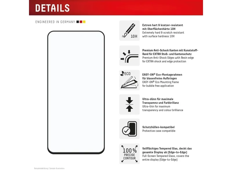Once the protective glass has been fitted, the high-performance adhesive ensures optimum adhesion properties and a clear look. The adhesive is adapted to all display coatings of the various manufacturers so that the protective film for mobile phones holds reliably in the long term. The visual appearance is not affected either: despite the screen protection film, you can enjoy gripping videos and photos with maximum transparency and colour fidelity.