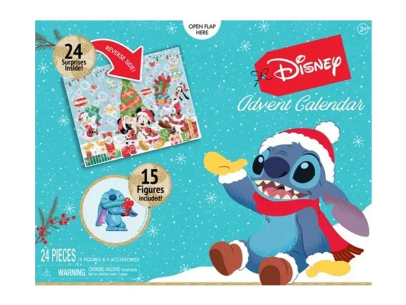 Celebrate the Holiday Season with Disney Stitch Advent Calendar. The packaging incluedes 24 surprises in total; 9 figures, holiday play pieces and 5 stickers.