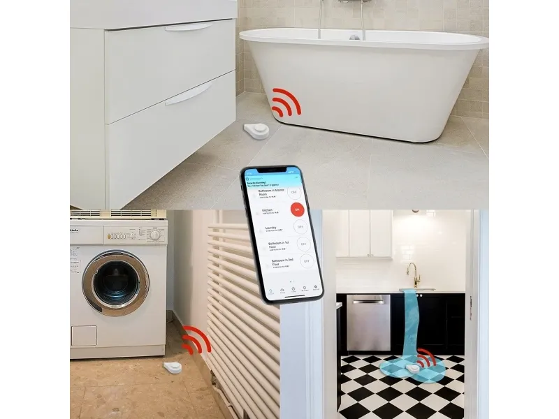 Water Leak Sensor provides an effective solution to protect your property. Easy setup and no wiring required; which makes monitoring even easier. You can put it everywhere you want to monitor, like laundry rooms, bathrooms, kitchens, or wherever there is a potential for leaks. When a water leak occurs, the sensor will not only send a loud alarm, but also deliver an APP notification to your phone. So you can deal with it in time to avoid water damage.
