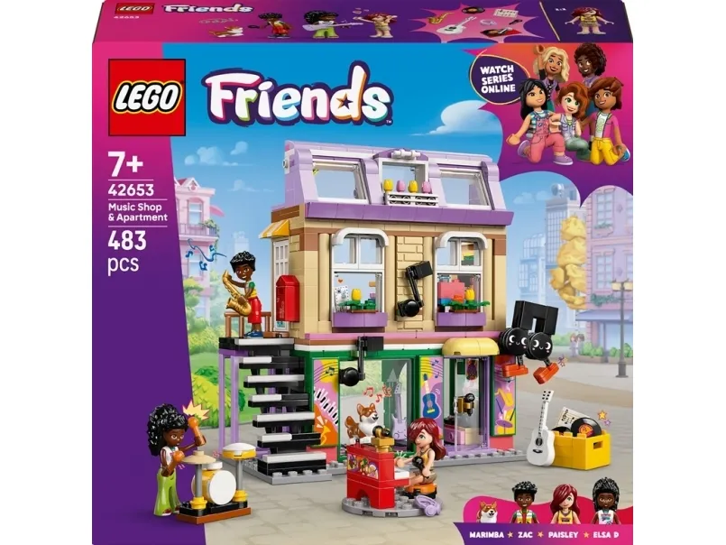 Kekseliäitä leikkejä ja tarinoita ystävyydestä – Tämä setti inspiroi lapsia kertomaan tarinoita LEGO Friends hahmoista, kun he keksivät erilaisia sosiaalisia tilanteita musiikkikaupassa ja viihtyisässä asunnossa
