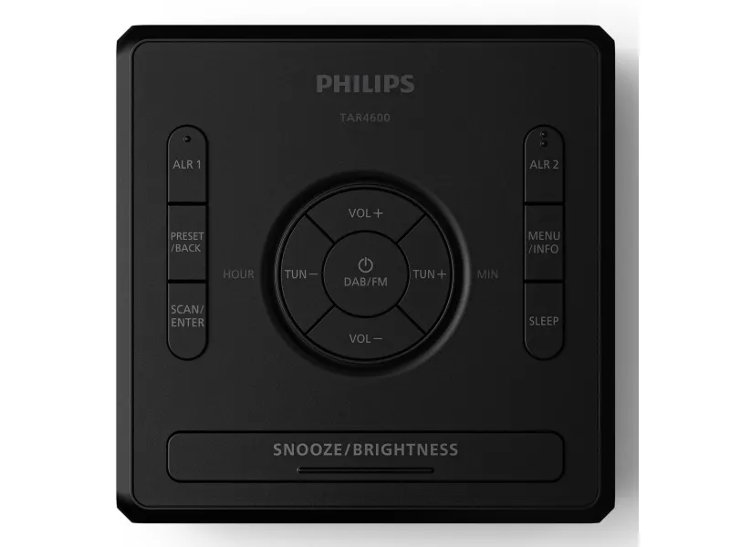 Philips TAR4600/10. Type: Digital alarm clock, Shape: Square, Product colour: Black. Display type: LCD. Power source: AC/Battery, Battery type: AAA, Power consumption (typical): 1.5 W. Width: 103 mm, Height: 103.5 mm, Depth: 103 mm. Quantity per pack: 1 pc(s), Package width: 176 mm, Package depth: 121 mm