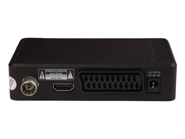 Multiple Connections It offers various connections including HDMI, Scart, RF in, Coaxial output, LAN input, and USB for media playback.Denver DTB-148. Signal source: Ethernet (RJ-45), Terrestrial, HD type: Full HD, Digital signal format system: DVB-T2. Video formats supported: H.265, MPEG1, MPEG2, MPEG4, Audio formats supported: HE-AAC, Subtitle formats supported: DVB. Product colour: Black, Tuner type: Analog & digital, Frequency range: 177.5 - 858 MHz. Display type: LED. AC input voltage: 230 V, AC input frequency: 50 Hz