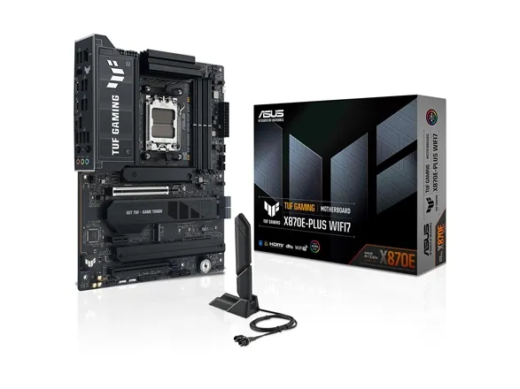 ASUS TUF GAMING X870E-PLUS WIFI7, AMD, Socket AM5, AMD Ryzen 7000 Series, AMD Ryzen 8000 Series, AMD Ryzen 9000 Series, Socket AM5, DDR5-SDRAM, 256 GB