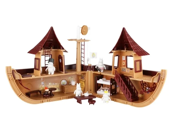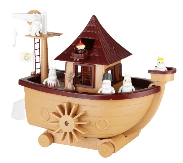 Upean yksityiskohtainen laiva avautuu sivuun ja paljastaa, miten Muumilaakson väki viihtyy merillä. Muumilaiva on avattuna 52 cm. Pakkaus sisältää 60 osaa, mukaan lukien 7 hahmoa ja tarroja. Huom! Laiva ei sovellu vesikäyttöön.