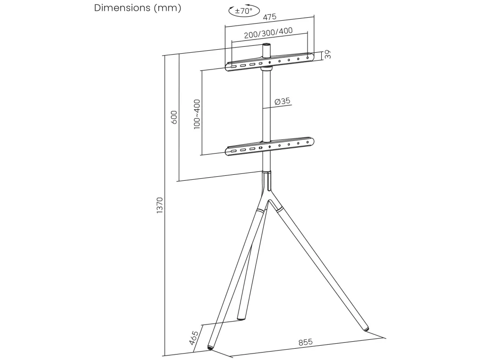 SpeaKa Professional SP-TVS-800 TV-fod 114,3 cm (45) - 165,1 cm (65) Gulvstativ