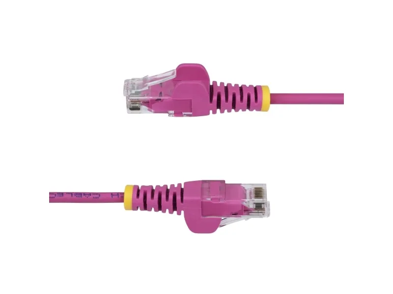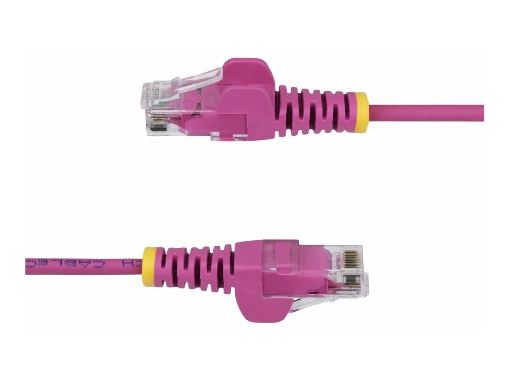 The 7 m Pink Slim CAT6 Ethernet Cable by StarTech.com offers reliable and efficient networking solutions. This patch cable supports up to 1 Gbps and features high-quality pure bare copper conductors that ensure performance. Equipped with both left and right RJ-45 male connectors, connections are easy and secure, making it a versatile choice for various networking needs. With its flame-retardant and Low Smoke Zero Halogen (LSZH) jacket, this cable prioritizes safety in various environments. Additional features include strain relief to prevent cable damage, minimized Near-End Crosstalk (NEXT) for improved signal quality, and the ability to support 100 W Power over Ethernet (PoE++) for flexibility in powering devices. This cable meets multiple compliance standards, including RoHS and IEEE 802.3bt, ensuring a reliable choice for modern networking requirements.