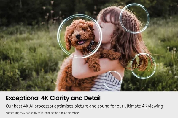 Experience visuals with the 83-inch OLED display, providing a vibrant 4K UHD resolution of 3840 x 2160. Equipped with picture enhancements like Auto HDR Remastering Pro and AI Motion Enhancer Pro, this television ensures every detail comes to life with clarity and depth. The sleek bezel-less design complements any home decor, while the smart functionalities allow access to a vast array of streaming services and content, including Samsung TV PLUS.