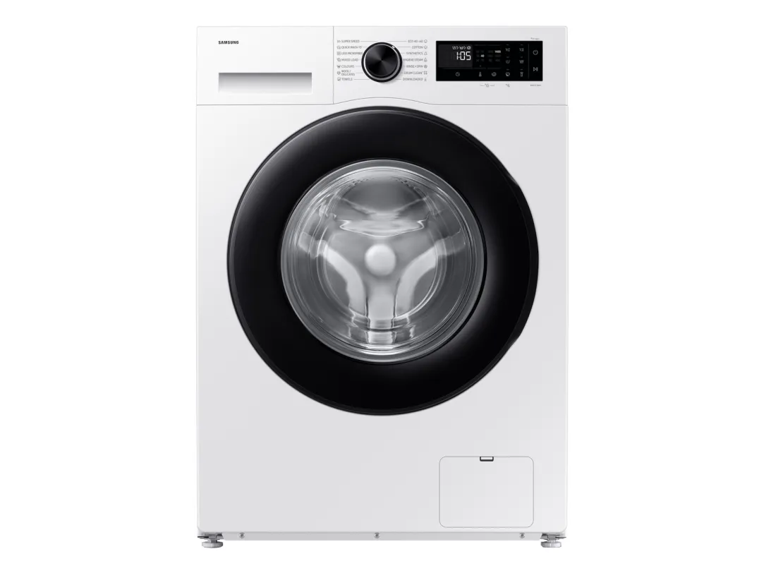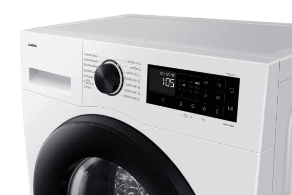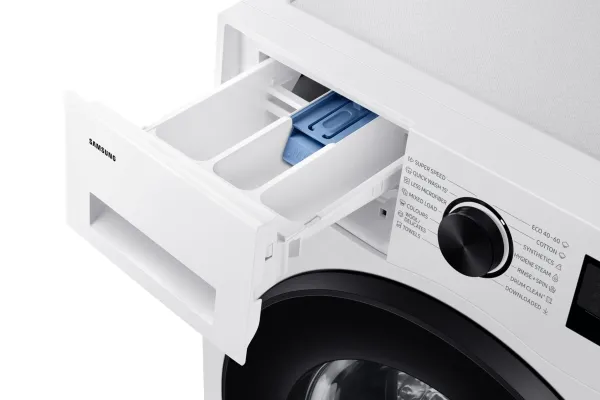 Brand- Samsung. Model- WW90DG5G34AELE. Width- 60 cm. Depth- 48 cm. Height- 85 cm. Colour- White. Weight- 59 kg. Energy Efficiency Class- A. Electric motor type- Without brushes. Water consumption per cycle- 50 l. Drilling efficiency class- B. Washing efficiency class- A. Washing capacity- 9 kg. Drilling, rpm- 1400. Control- Sensoric, Electronic. Number of applications- 14. Washing programs- Hygiene steam program, Eco 40-60, Daily laundry, Super15, Quick wash, Wool washing program, Cotton, Synthetics, Colours, Towels washing program. Screen- Yes. Screen type- LED. Noise level during drilling- 72 dB. Water spill protection- No. Postponement of the start of the program- Yes. Child safety function- Yes. Mandatory warranty- 24 mo.