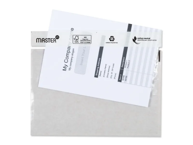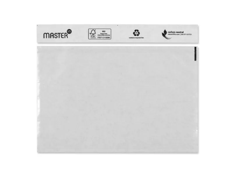 Kirjekuoritasku, Master'in Performance C6, 175 x 140 mm, läpinäkyvä, painamaton kierrätetty LDPE, laatikko