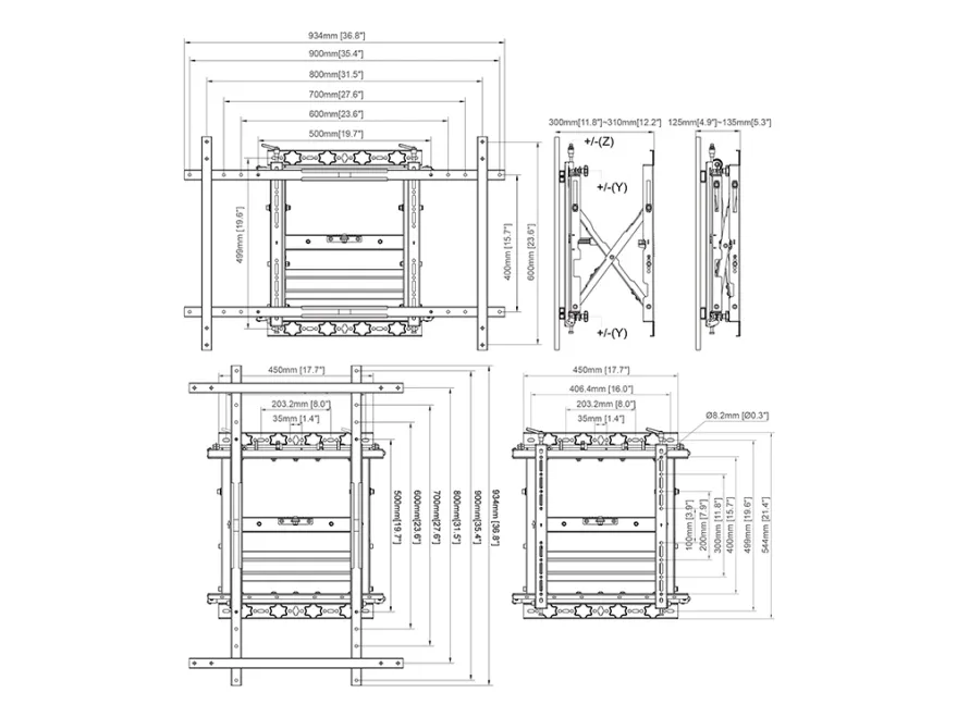 Multibrackets M Public asennuspakkaus malleihin litteä paneeli - työnnä, leveä, 90 kg - musta