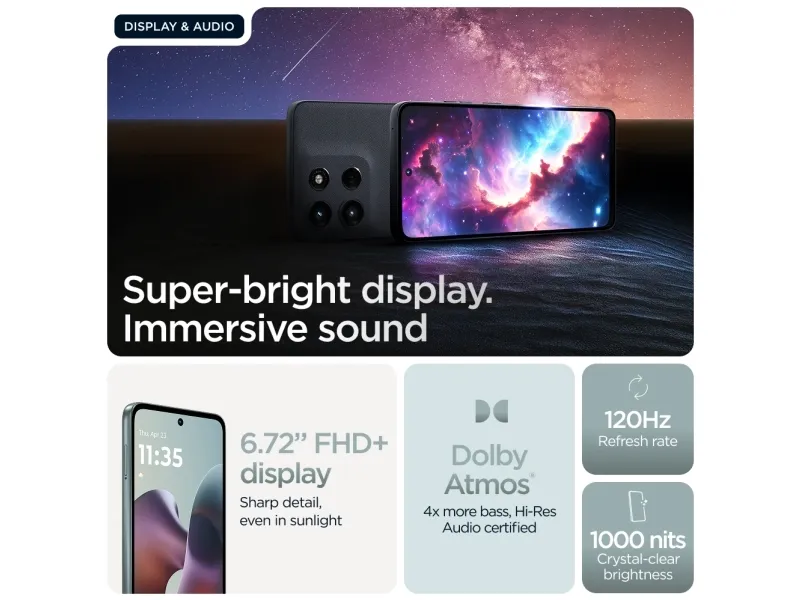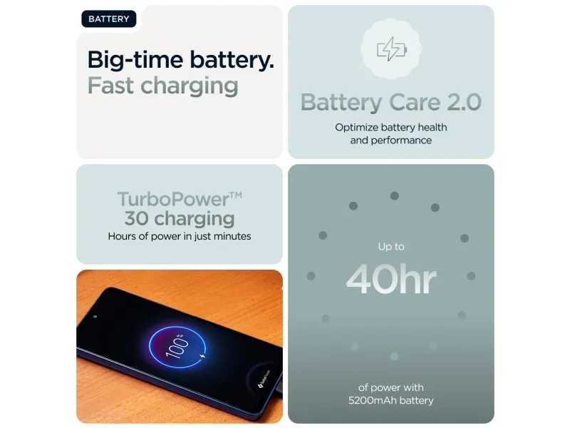 Motorola Moto G56 tarjoaa suorituskyvyn ja kestävyyden yhdistelmän, joka on suunniteltu luotettavuutta vaativille käyttäjille. Vankalla 5200 mAh:n akulla tämä älypuhelin tarjoaa pitkän käyttöajan latausten välillä, mikä on ihanteellista päivittäisiin toimintoihin, viihteeseen ja viestintään. Laite toimii Android-käyttöjärjestelmällä ja henkilökohtaisella My UX -käyttöliittymällä, joka tarjoaa saumattoman käyttökokemuksen intuitiivisilla säätimillä.