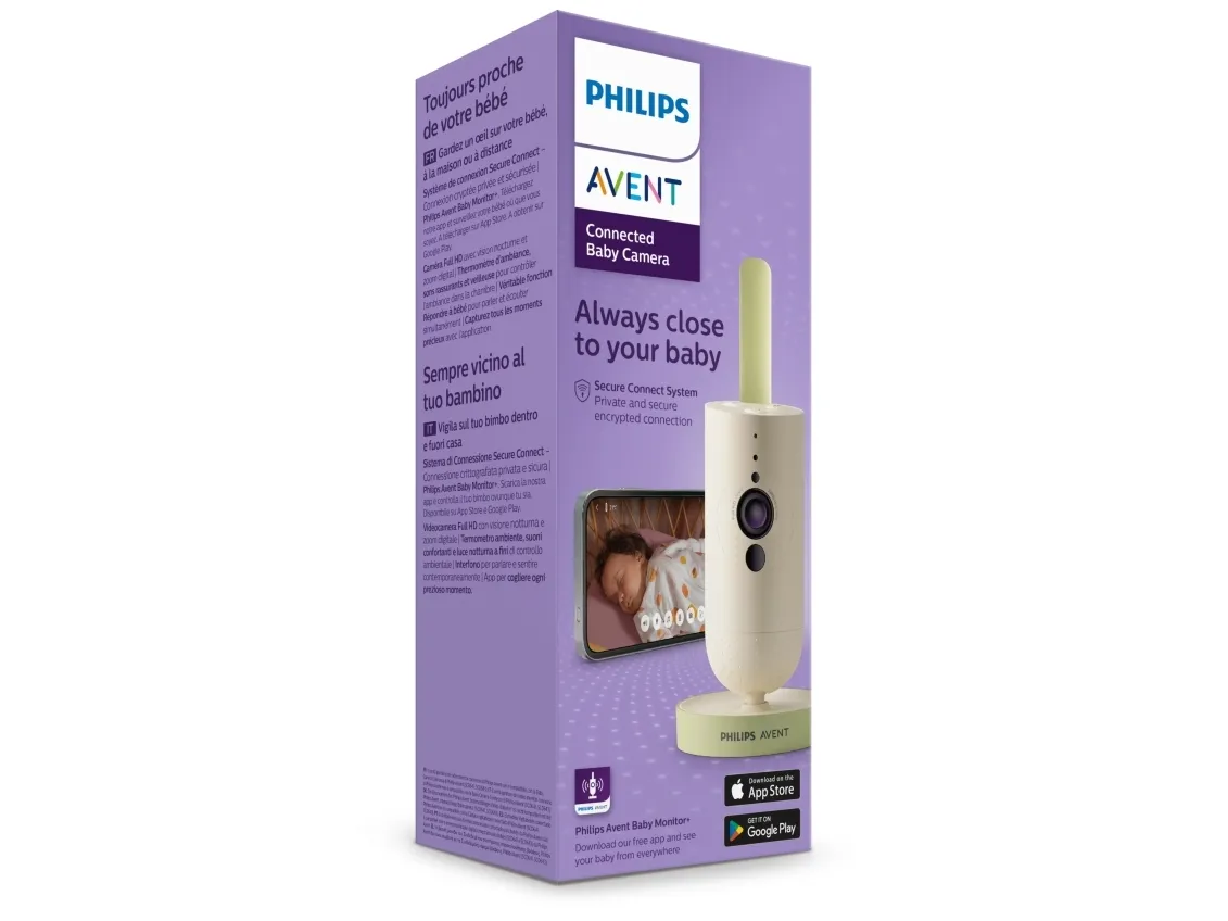 Keep an eye on your baby securely and from anywhere with the Philips Avent Connected Baby Camera. Our HD camera, true talkback function and Secure Connect System keep you linked to your little one from anywhere with the Baby Monitor+ app.Philips AVENT Baby Monitor SCD643/26 Connected Baby Camera. LED type: IR, Video resolutions: 1920 x 1080 pixels. Mobile operating systems supported: Android, Android 10.0, Android 11.0, Android 12.0, Android 13.0, Android 6.0, Android 7.0, Android.... Interface: Wi-Fi, Frequency band: 2.4 GHz. Device type: Camera, Product colour: Beige, Green. Power source type: AC, AC input voltage: 5 1A AC/DC Adapter