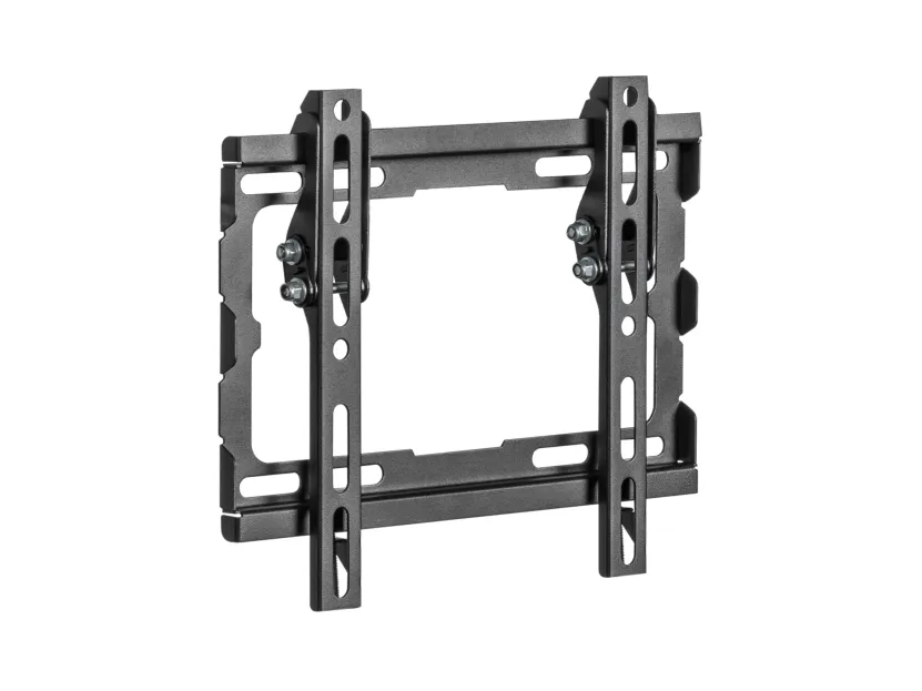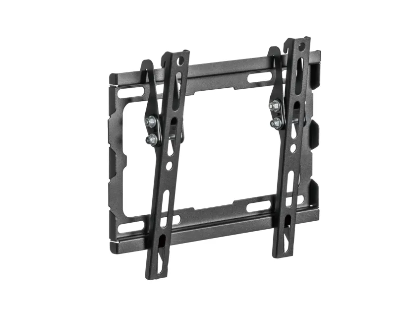 Tiltable TV wall mount for most 23'-43' flat panel TVs with a maximum weight of 45kg. Low-Profile Tilt TV Wall Mount not only has excellent quality, but also has absolutely great price! Super Slim design sits just 20mm from wall. Simple construction ensures a quick and easy installation. Open architecture provides increased ventilation and easier access to wires. Tilt design for better viewing angle. Convenient rail screws securely and safely hold the TV in place.