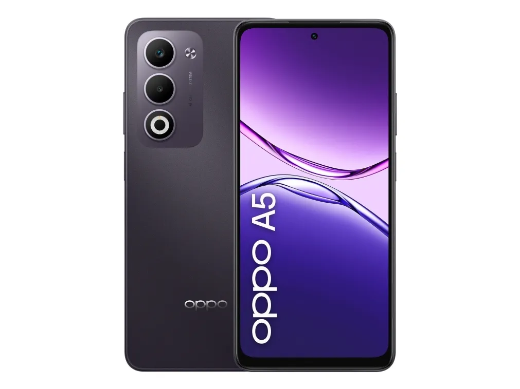 OPPO A5 . Display diagonal: 16.9 cm (6.67"), Display resolution: 1604 x 720 pixels. Processor frequency: 2.1 GHz, Processor family: Qualcomm Snapdragon, Processor model: 6s Gen 1. RAM capacity: 6 GB, RAM type: LPDDR4X, Internal storage capacity: 128 GB. Rear camera resolution (numeric): 50 MP, Rear camera type: Dual camera. SIM card capability: Dual SIM. Operating system installed: Android 15. Battery capacity: 6000 mAh. Product colour: Purple. Weight: 194 g