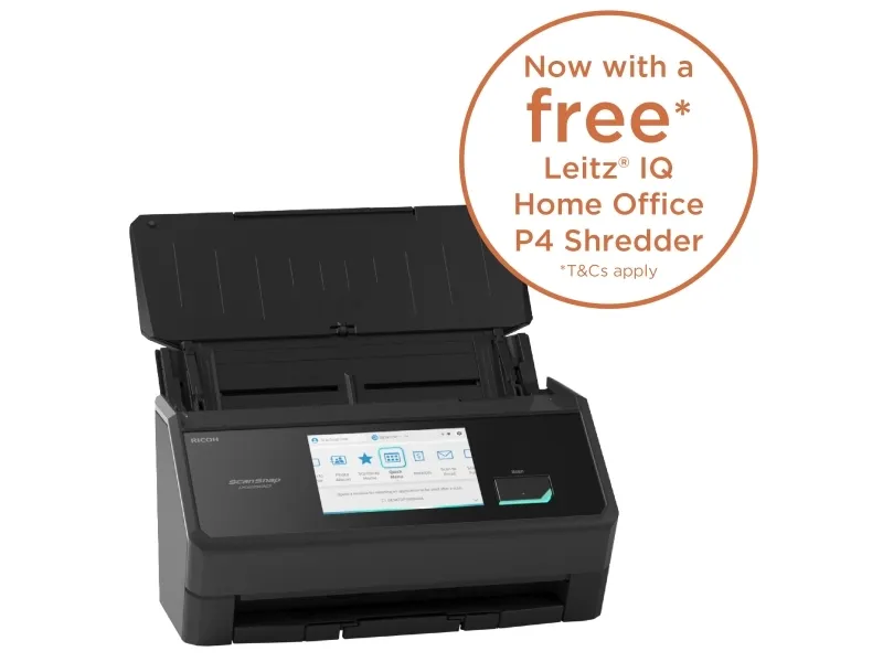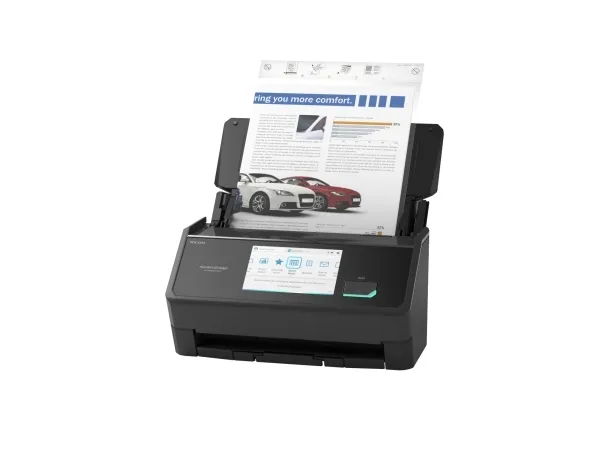 Ricoh ScanSnap iX2500 on monipuolinen pöytäkannettava asiakirjaskanneri, joka on suunniteltu sekä ammattikäyttöön että kotikäyttöön. Sen optinen tarkkuus on jopa 600 dpi, joten se tuottaa selkeitä ja yksityiskohtaisia skannauksia erilaisille asiakirjatyypeille, kuten tavalliselle paperille, käyntikorteille, valokuville ja kuiteille. IX2500-skannerissa on 5 tuuman kosketusnäyttö, joka helpottaa toimintojen, kuten skannauksen pilvipalveluun, sähköpostiin tai Office 365:een, käyttöä. Automaattinen värintunnistus ja kaksipuolinen skannaus jopa 45 sivun minuuttinopeudella tehostavat työnkulkua ja parantavat tuottavuutta. Skanneriin mahtuu erilaisia asiakirjoja, sillä sen automaattinen asiakirjansyöttölaite (ADF) pystyy käsittelemään jopa 100 arkkia kerrallaan. Lisäominaisuudet, kuten tyhjän sivun tunnistus, läpikuultavuuden vähentäminen ja kuvan kiertäminen, takaavat laadun ja tarkkuuden. Liitäntämahdollisuudet, kuten USB 3.2 Gen 1x1, Wi-Fi (ax) ja Bluetooth 5.2, tarjoavat joustavan integroinnin laitteisiin. Ympäristöystävällinen Ricoh ScanSnap iX2500 on ENERGY STAR -sertifioitu ja RoHS-standardien mukainen, mikä takaa alhaisen virrankulutuksen. Se toimii tehokkaasti 17 watin virrankulutuksella käytön aikana ja 0,2 watin virrankulutuksella valmiustilassa. Se sopii erilaisiin toimistoympäristöihin ja toimii 5–35 °C:n lämpötila-alueella ja 20–80 %:n kosteudessa.