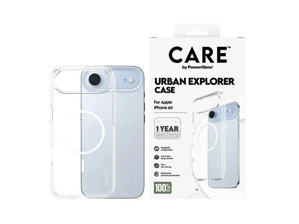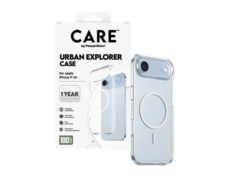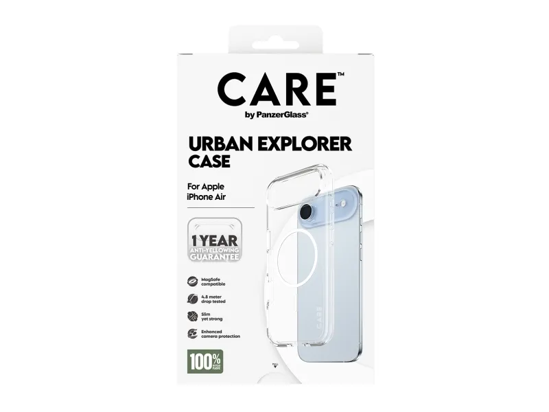 PanzerGlass CARE by ® Flagship Case Transparent Urban Explorer w. White MagSafe iPhone Air, Cover, Apple, Apple - iPhone Air, Transparent