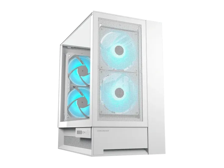 Light. Speed. The OmnyX features an integrated universal fan hub that enables seamless coordination of PWM fan speed and lighting. This allows you to control the RGB lighting without needing additional software, or motherboard software synchronization.COUGAR Midi Tower Case OmnyX, ARGB, White. Form factor: Midi Tower, Type: PC, Product colour: White. Front fans installed: 2x 160 mm, Front fans diameters supported: 120,140,160 mm, Side fans diameters supported: 120 mm. Supported HDD sizes: 2.5,3.5". Width: 300 mm, Depth: 470 mm, Height: 520 mm. Package width: 390 mm, Package depth: 635 mm, Package height: 575 mm