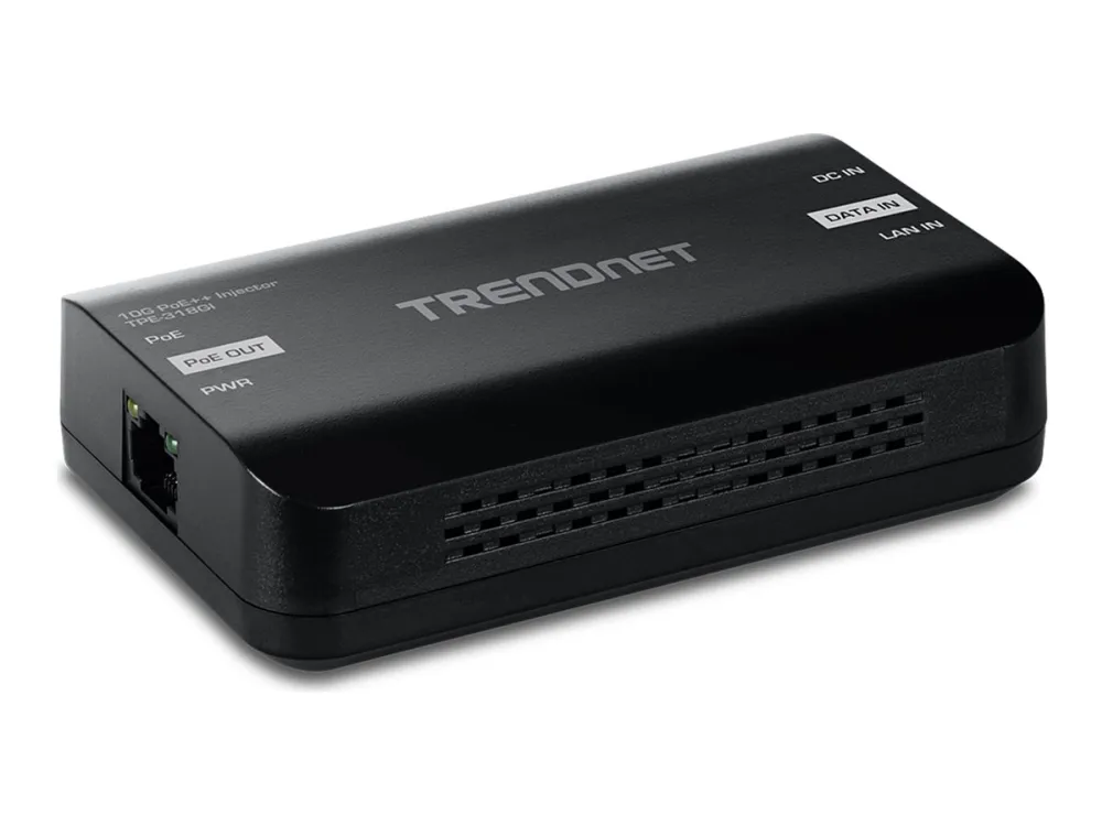 The TRENDnet TPE-318GI PoE injector delivers power over Ethernet with a 10G interface, allowing for connectivity and energy distribution. This device supports Power over Ethernet (PoE++) technology with a 90 watt power budget, suitable for applications where power provisioning is essential. With environmental tolerance operating in temperatures from 0°C to 50°C and a humidity range of 90% (non-condensing), the TPE-318GI ensures performance in various climates. Designed with convenience in mind, the injector features a magnetic wall-mount design for installation and can function at distances of up to 100 m. It complies with standards such as IEEE 802.3af, FCC, and UKCA, ensuring compatibility for network deployment. With LED indicators and auto-sensing technology, this device is functional and user-friendly.
