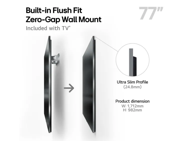 On the audio front, the 4.2 channel speaker system delivers 60 watts of output, incorporating innovations such as AI Acoustic Tuning and Clear Voice Pro technology to enrich sound quality. Enhanced Audio Return Channel (eARC) and Bluetooth Surround ready compatibility provide options for connecting external audio systems. The UI is further enhanced by the LG Magic Remote that features voice control and intelligent recognition, allowing seamless navigation. Together with smart functionality, web browsing, and support for online gaming, the LG OLED77G54LW is a choice for tech enthusiasts.
