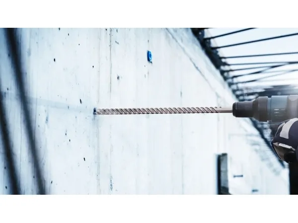 Drilling through reinforced concrete is a tough job and it has traditionally taken its toll on hammer drill bits. Even 4-cutters wear out fast, resulting in downtime changing accessories and fetching supplies. The Full Carbide Head on the EXPERT SDS max-8x is an advanced 4-cutter design made from a single piece of the toughest metal: It doesn't jam and presents no weakness on impact.