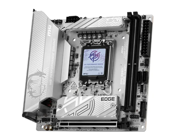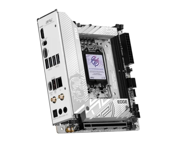 MPG B860I EDGE TI WIFI is a mini-ITX B860 motherboard with incredible power and expansion. It features robust power design, Killer Wi-Fi 7 and 5G LAN, Thunderbolt™ 4, PCIe 5.0 connecitvity. It is definetly the best B860 mini-ITX motherboard for Intel Core Ultra processors.MSI MPG B860I EDGE TI WIFI. Processor manufacturer: Intel, Processor socket: LGA 1851 (Socket V1), Compatible processor series: Intel Core Ultra (Series 2). Supported memory types: DDR5-SDRAM, Maximum internal memory: 128 GB, Memory slots type: DIMM. Supported storage drive interfaces: M.2, SATA, Supported storage drive types: HDD & SSD, RAID levels: 0, 1. Ethernet interface type: 5 Gigabit Ethernet, Top Wi-Fi standard: Wi-Fi 7 (802.11be), Wi-Fi standards: 802.11a, 802.11b, 802.11g, Wi-Fi 4 (802.11n), Wi-Fi 5 (802.11ac), Wi-Fi 6 (802.11ax), Wi-Fi 7.... Component for: PC, Motherboard form factor: mini ITX, Motherboard chipset family: Intel
