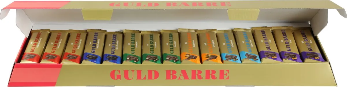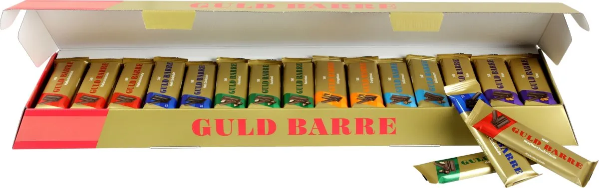 Den består af 30 almindelig chokoladebar med indhold af 45 g.