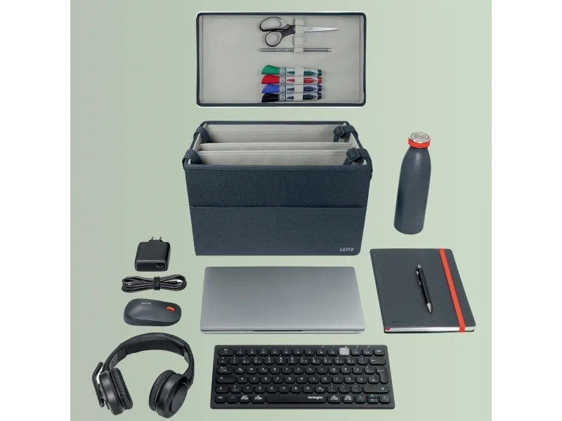 Leitz Compact Hot Desking -työkassi kannella Velvet grey Velvet grey