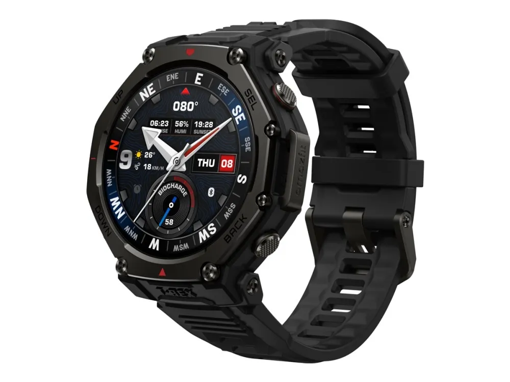 The Amazfit T-Rex 3 Pro by Zepp Health is a versatile smart watch designed for active lifestyles. Featuring a durable round case made from titanium grade 5 and fiber-reinforced polymer, this watch is both rugged and lightweight, ensuring comfort and resilience in any environment. The 1.5-inch AMOLED display with sapphire glass protection provides a vibrant viewing experience, while its always-on feature keeps essential information accessible at all times.