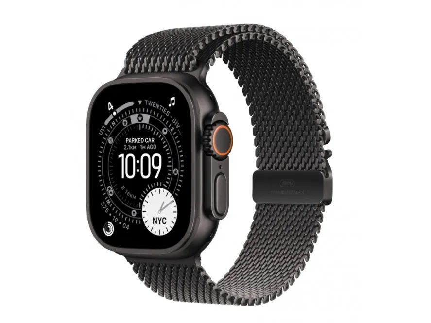 Apple Watch Ultra 3 - musta titaani - Kyllä älykello kanssa milanese loop - musta - 64 Gt