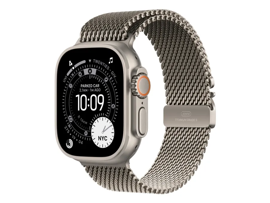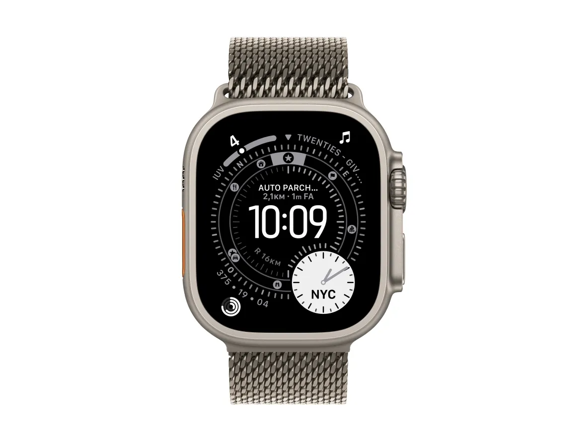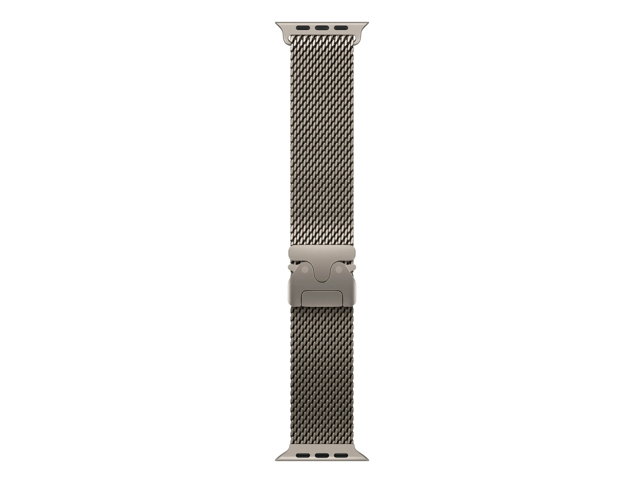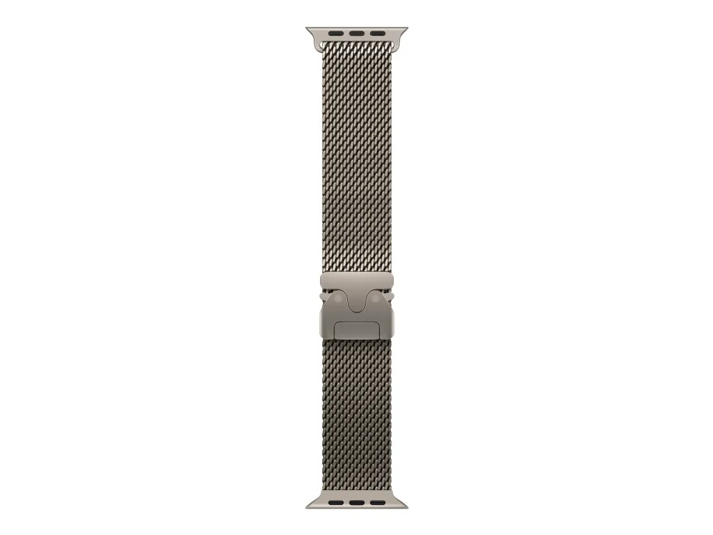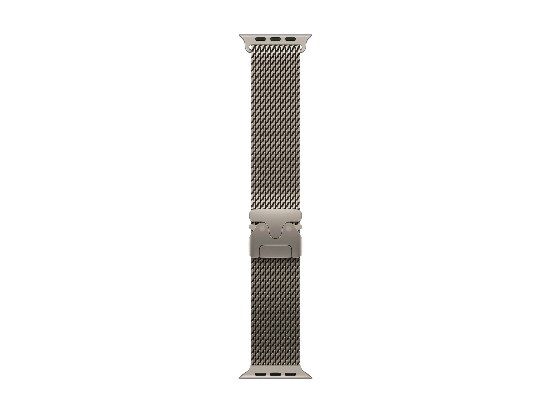 Apple Milanese Loop -rannekoru yhdistää tyylin ja toiminnallisuuden, ja se on suunniteltu älykelloille, joiden kotelon koko on 44 mm, 45 mm, 46 mm tai 49 mm. Rannekoru on valmistettu ilmailu- ja avaruusteollisuuden titaanista, ja siinä on luonnollinen titaanipinta. Se on kevyt ja kestävä. Sen laskuvarjotyyppinen solki takaa turvallisen istuvuuden ranteille, joiden ympärysmitta on 180–210 mm. Milanese Loop erottuu edukseen elegantilla muotoilullaan ja sitoutumisellaan kestävään kehitykseen, sillä se on valmistettu 95-prosenttisesti kierrätysmateriaaleista.