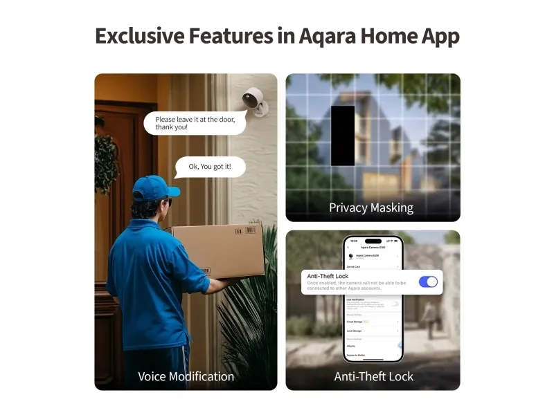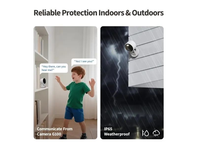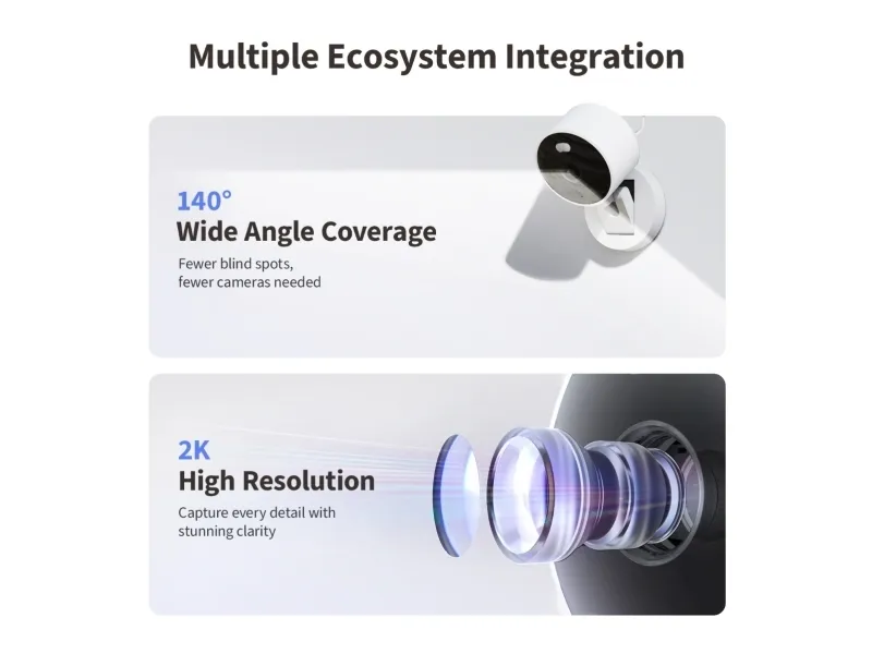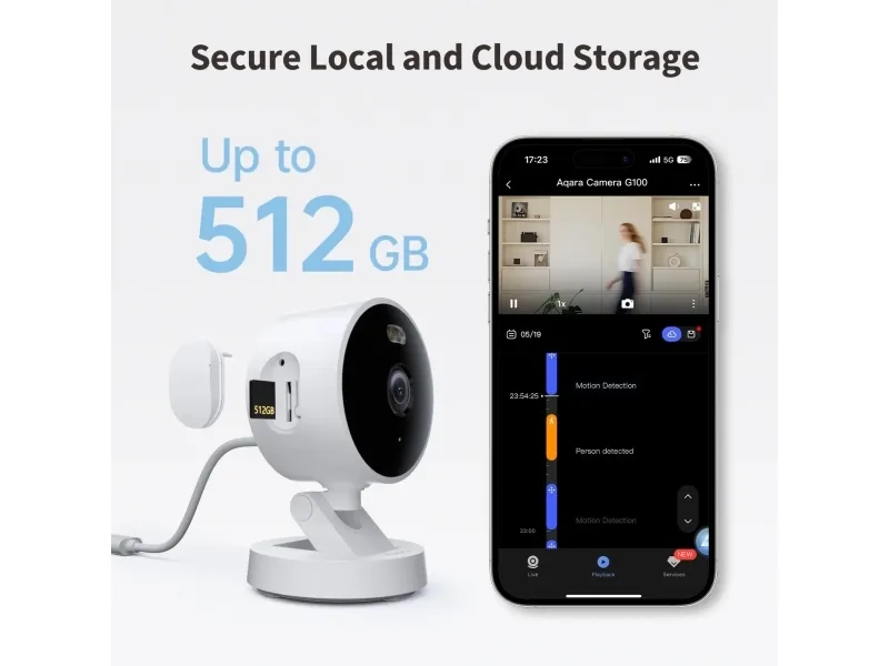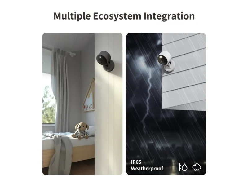 The Camera G100 Select is an all-weather camera for indoor and outdoor use. Its 2K resolution and f/1.8 aperture ensure crisp, detailed images, its spotlight and invisible infrared night modes ensure clear imaging in all lighting conditions. It offers flexible storage options, including 24/7 local recording via microSD card (not included), NAS backup, and optional cloud storage, with privacy and data protection in mind. Equipped with AI features such as motion and human detection, as well as custom ringtones for automation, it further protects your home. Compatible with all major ecosystems, including Apple Home, Google Home, Amazon Alexa, SmartThings, and Home Assistant (via RTSP connection), it is a powerful smart camera.