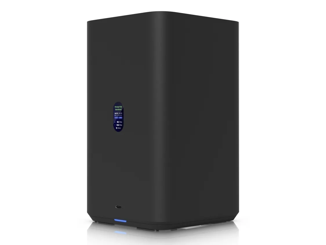 The Ubiquiti UniFi UNAS 2 offers a networking solution designed to handle demanding data requirements efficiently. Featuring a quad-core ARM processor clocked at 1.7 GHz, this server is engineered for high performance, ensuring smooth operation under various conditions. The device includes a built-in 1.47-inch LCM display for easy monitoring, and its polycarbonate enclosure provides durability while maintaining functionality. With 4 GB of installed RAM and the capability to support both 2.5 and 3.5-inch hot-swap drives, this NAS server allows for storage flexibility and expansion. Equipped with 2.5 Gigabit Ethernet and a variety of data link protocols including Bluetooth, this unit is compliant with standards such as IC, FCC, and NDAA. The device is designed to operate within a broad temperature range, from -5°C to 40°C, making it suitable for diverse environments.