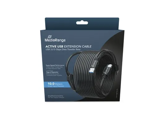 MediaRange aktiivinen USB-jatkojohto, USB 3.0, 10m, musta