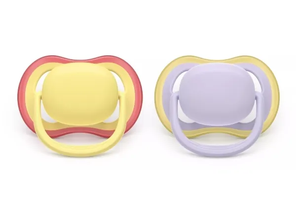 Soothing and breathable with large airholes. 9 out of 10 parents agree: Philips Avent ultra air soothers are comfortable for my little one.** Soothing relief is always near, no matter who's taking care of baby. Now 80% plant-based.*Philips AVENT Pacifier SCF087/03 ultra air. Type: Classic baby pacifier, Nipple teat shape: Orthodontic, Nipple material: Silicone