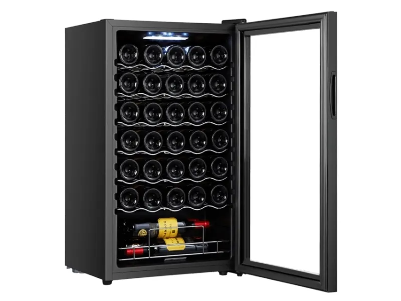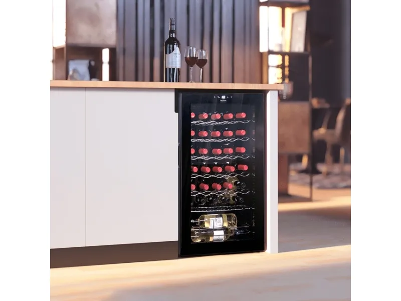 uomio! Kaapin tilavuus lasketaan käyttäen Burgundy-viinipulloja ja ilman hyllyjä. Tämä tarkoittaa, että sinne mahtuu todellisuudessa hyllyt asennettuna vähemmän pulloja kuin mitä tuotekuvaus sanoo.