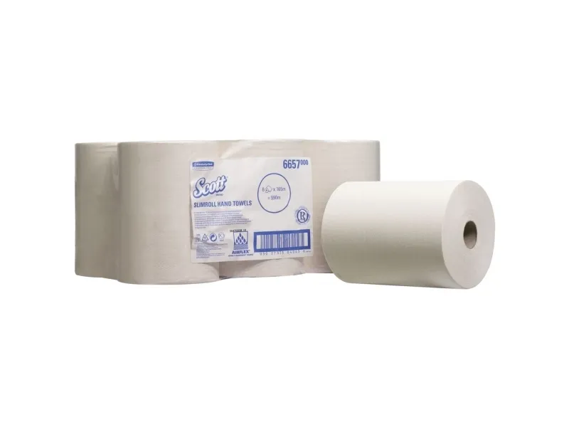 Ylivoimainen lujuus, imukyky ja hygienia edullisessa paketissa. Scott 6657 Slimroll -käsipyyhkeet sopivat erinomaisesti kaikkiin vilkkaasti liikennöityihin tiloihin, kuten pesuhuoneisiin, henkilökunnan wc-tiloihin ja julkisiin käymälöihin.