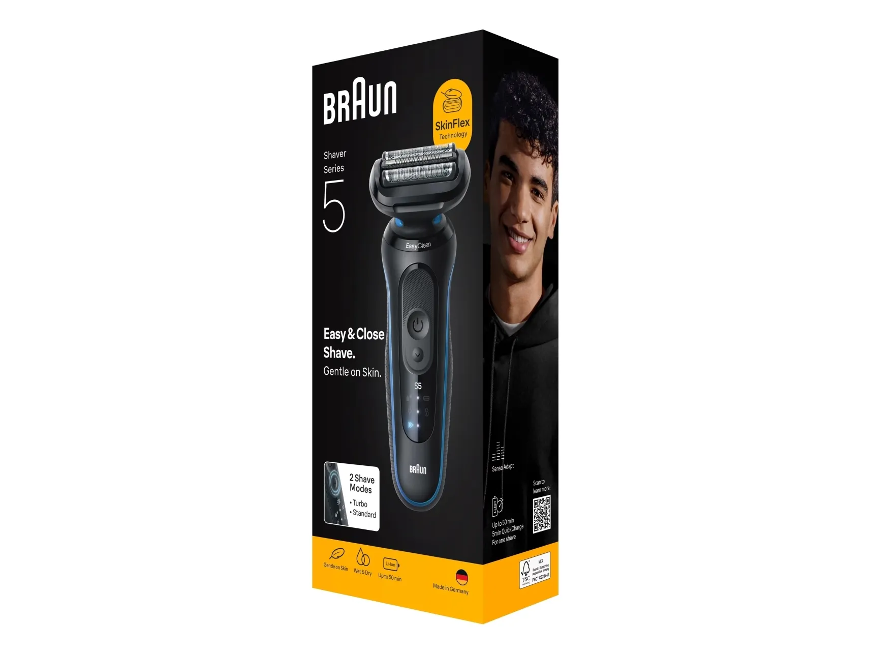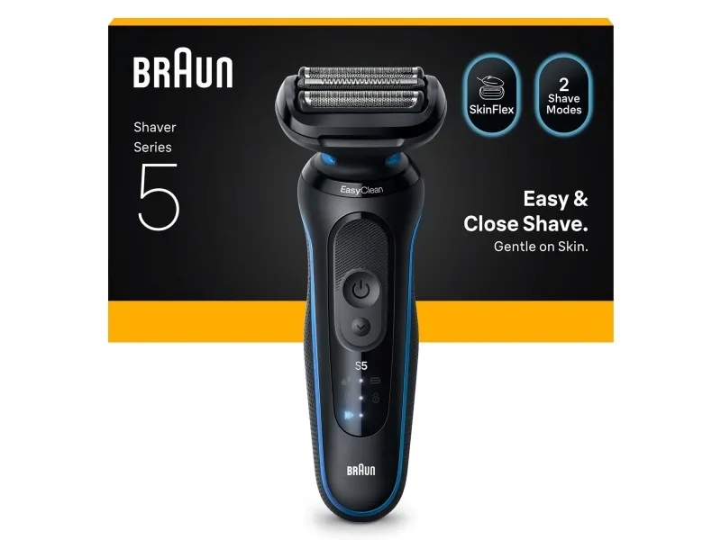 Braun Series 5 52-B1000s, Foil shaver, Black, Buttons, Intensive, Normal, Battery, Lithium-Ion (Li-Ion)