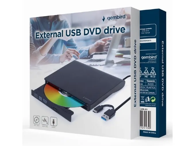 Gembird DVD-USB-031, Black, Front, CE, Desktop, DVD±RW, USB Type-C