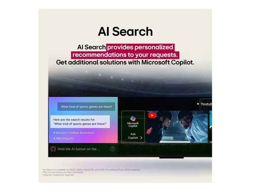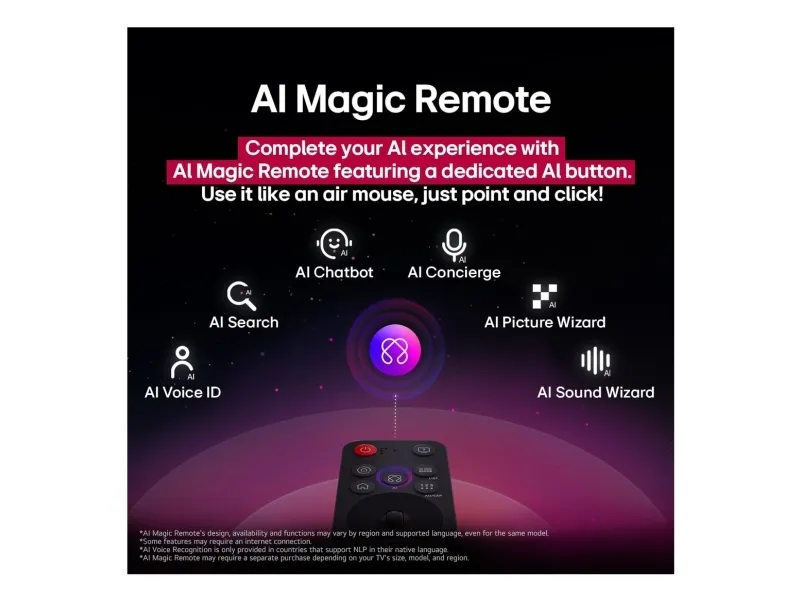 LG UHD 65UA74006LB. Display diagonal: 165.1 cm (65"), Display resolution: 3840 x 2160 pixels, HD type: 4K Ultra HD, Display technology: LED, Screen shape: Flat, LED backlighting type: Direct-LED. Smart TV. Digital signal format system: DVB-C, DVB-S, DVB-S2, DVB-T, DVB-T2. Wi-Fi, Ethernet LAN. Product colour: Black