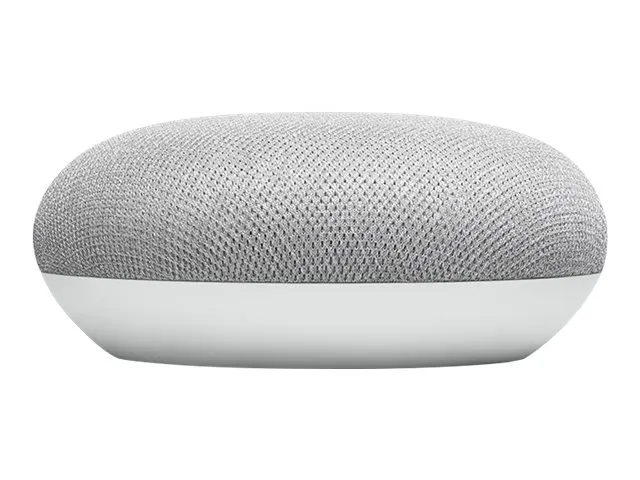 Google Home Mini, Google Assistant, Pyöreä, Harmaa, Valkoinen, Kangas, Muovi, Silikoni, Chromecast, Chromecast Audio, Android 5.0, Android 5.1, Android 6.0, Android 7.1, Android 7.1.2, iOS 9.1, iOS 9.2, iOS 9.3