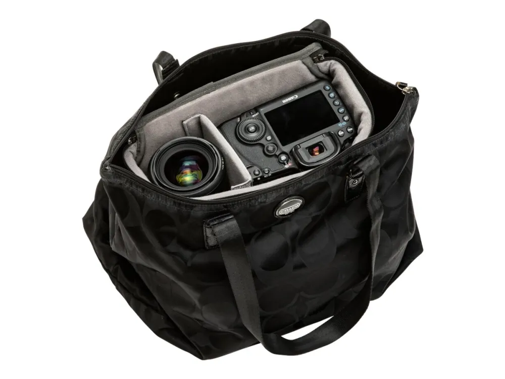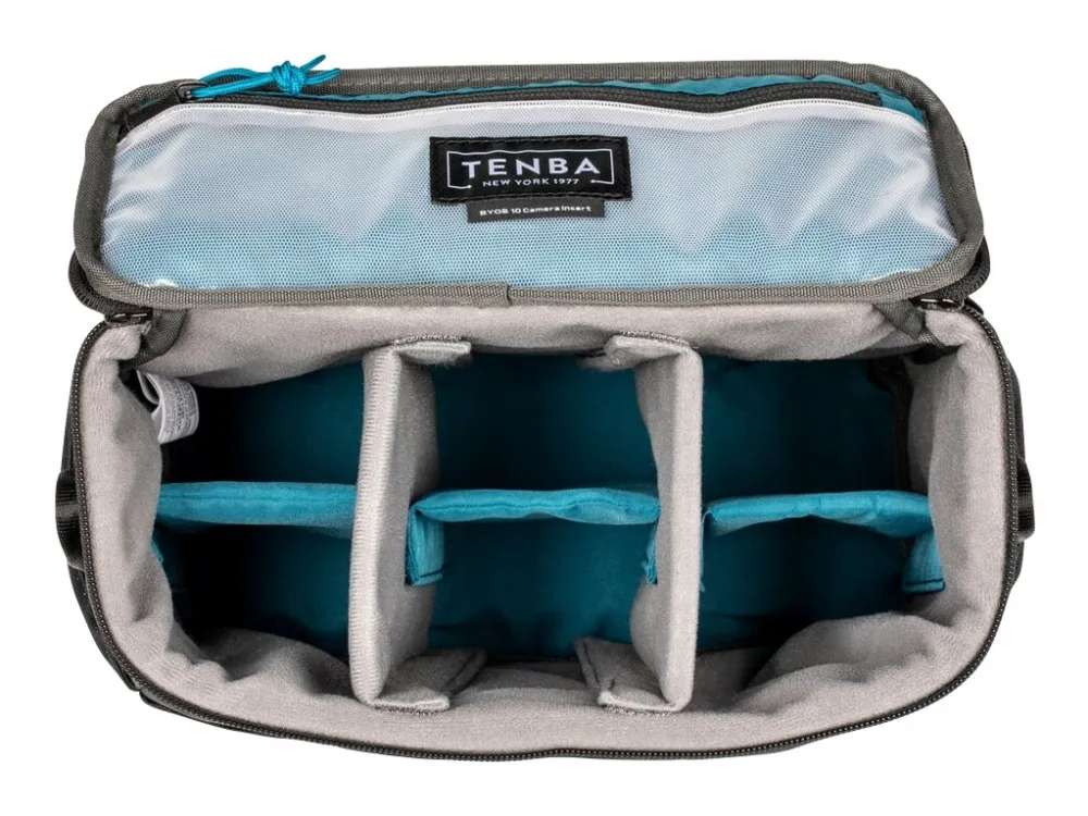 Turn any bag into a camera bag with Tenba's BYOB inserts. The BYOB 10 fits a mirrorless or DSLR camera with 2-4 lenses (up to attached 24-70mm 2.8). It is designed to carry and protect a camera inside a larger backpack, suitcase or handbag, and soft shell easily molds to the shape of any carrying bag.