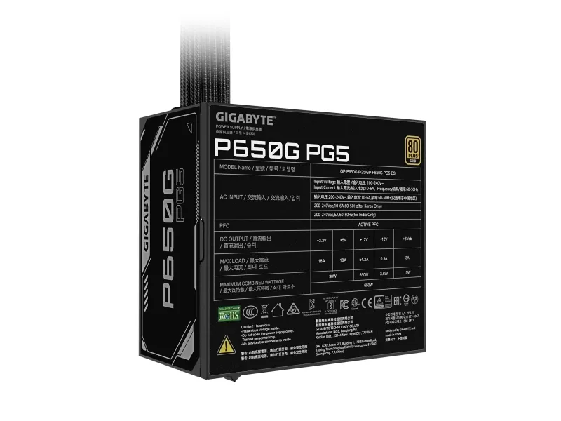 Ensure reliable and efficient power delivery with GIGABYTE power supplies. Designed for peak performance and durability, our PSUs offer stable and consistent energy to power your high-performance systems. With advanced protections and high-quality components, GIGABYTE power supplies provide the confidence you need for seamless, uninterrupted computing experiences.GIGABYTE P650G PCIE 5.1 Power Supply - PCIe 5.1, 80 PLUS Silver, 120mm Fan, ATX 3.1 compatible, EU Plug. Total power: 650 W, AC input voltage: 100 - 240 V, AC input frequency: 50/60 Hz. Motherboard power connector: 20+4 pin ATX, Motherboard power cable length: 60 cm, SATA power cable length: 120,500 mm. Purpose: PC, Power supply unit (PSU) form factor: ATX, 80 PLUS certification: 80 PLUS Gold. Product colour: Black, Cooling type: Active, Fan diameter: 12 cm. Width: 140 mm, Depth: 150 mm, Height: 86 mm
