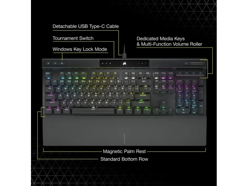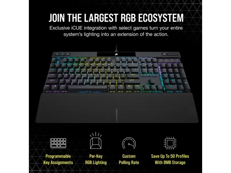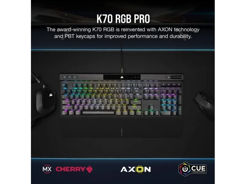 Corsair K70 RGB PRO, Täysikokoinen (100 %), USB, Mekaaninen, QWERTY, RGB LED, Musta