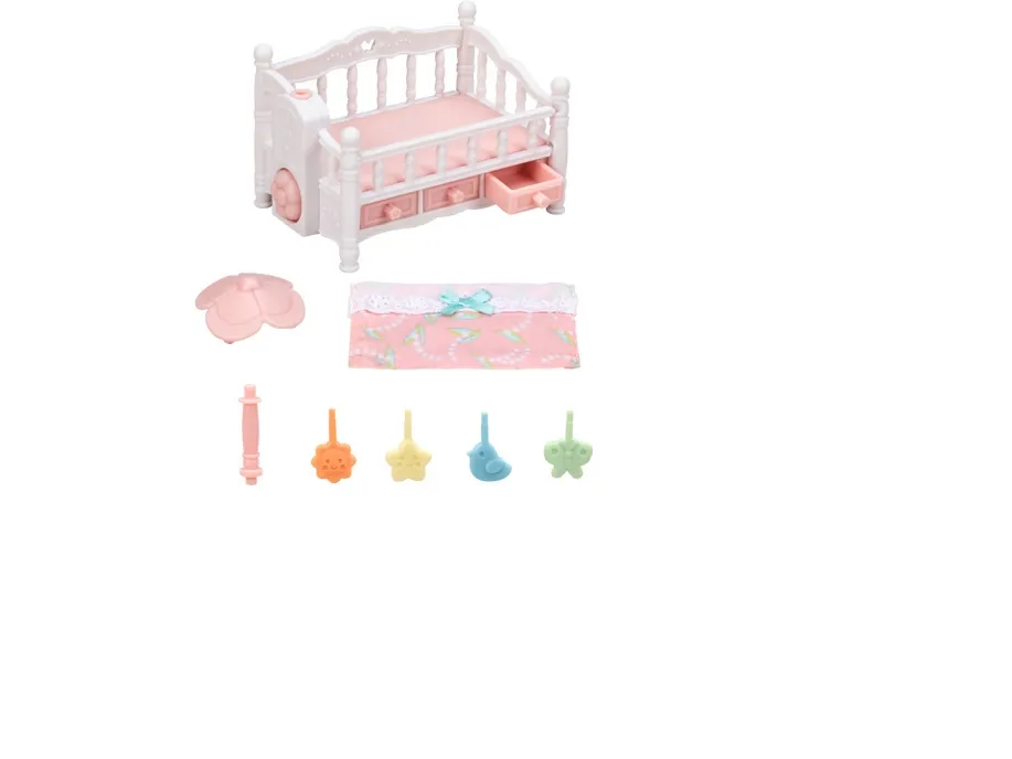 Pienet vauvat ja kolmoset näkevät suloisia unia Sylvanian Families -vauvavuoteessa mobileineen. Vuoteeseen voidaan laittaa nukkumaan vauva tai kolmoset. Vuoteen päädyssä olevaa kukkaa kiertämällä mobile pyörii. Kaide vuoteen sivulla voidaan kääntää ylös ja alas ja laatikoissa voi säilyttää pieniä vauvatarvikkeita. Settiin sisältyy vuode mobileineen sekä peitto. Ei sovellu alle 3-vuotiaille lapsille. • vuode, mobile ja peitto vauva- ja kolmoshahmoille • ylös käännettävä kaide ja avattavat laatikot • mobile pyörii vuoteen päädyssä olevaa kukkaa kiertämällä