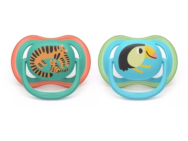 Lets your little one's skin breathe Extra-large airholes for more comfortable soothing Soothing and breathable with large airholes. 9 out of 10 parents agree: Philips Avent ultra air soothers are comfortable for my little one.** Soothing relief is always near, no matter who's taking care of baby. Now 80% plant-based.*Philips AVENT Pacifier SCF087/11 ultra air. Type: Classic baby pacifier, Nipple teat shape: Orthodontic, Nipple material: Silicone