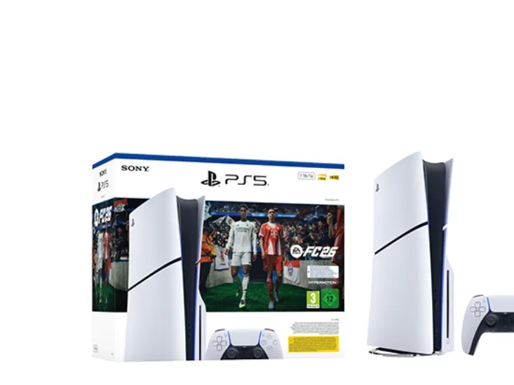 Sony PlayStation 5 + EA Sports FC 26 Bundle. Platform: PlayStation 5, Product colour: Black, White, Internal memory: 16384 MB. Storage media: SSD, Internal storage capacity: 1 TB, Read speed: 5500 MB/s. Ethernet LAN data rates: 10,100,1000 Mbit/s, Ethernet interface type: Gigabit Ethernet, Wi-Fi standards: 802.11a, 802.11b, 802.11g, Wi-Fi 4 (802.11n), Wi-Fi 5 (802.11ac), Wi-Fi 6 (802.11ax). HD type: 8K Ultra HD. Power source: AC, Power supply: 350 W