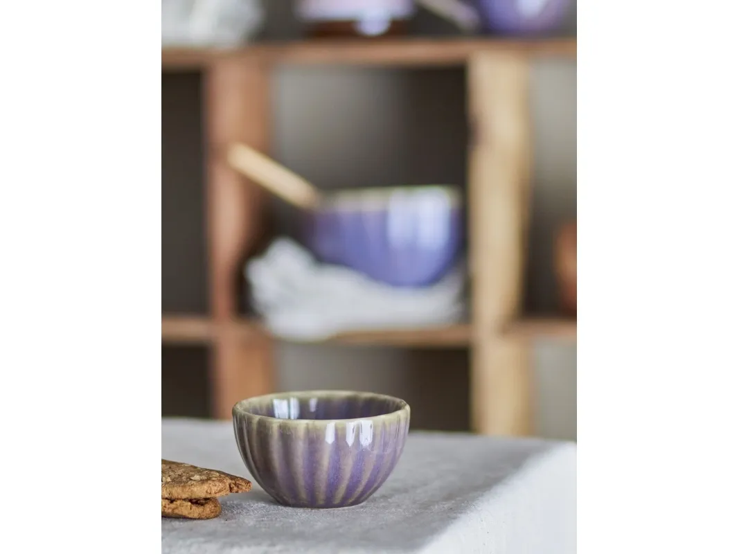 The Latina Bowl by Bloomingville features a beautiful and simple design with a purple glaze and brown undertones. The bowl's size is perfect for serving tapas or nuts. The bowl adds a feminine touch to any home and can be easily mixed and matched with tableware in either lighter or darker shades. Please note that the shades may vary slightly from product to product, giving each item its own unique character.