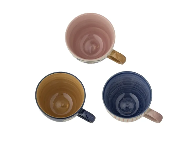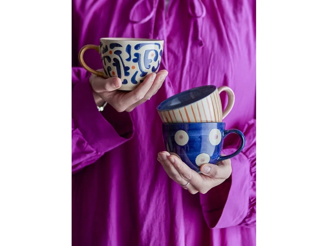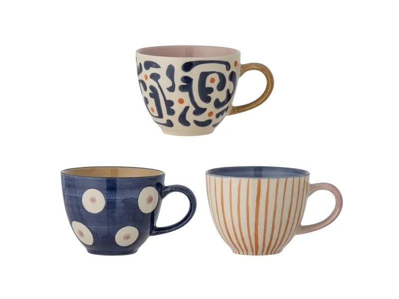 The Eviaya Cup by Bloomingville is a set of three charming cups made of stoneware. The cups are hand-painted with designs in pink, blue, brown, and light colors. The hand-painted details result in variations in patterns and color intensity, making each cup truly unique.