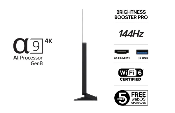 PerfectColor, 100% Color Volume, AI Picture Pro, pelin optimoija, Brightness Booster kirkkauden tehostin, 100% värin tarkkuus, OLED Color, OLED Dynamic Tone Mapping Pro, a9 AI Super Upscaling 4K