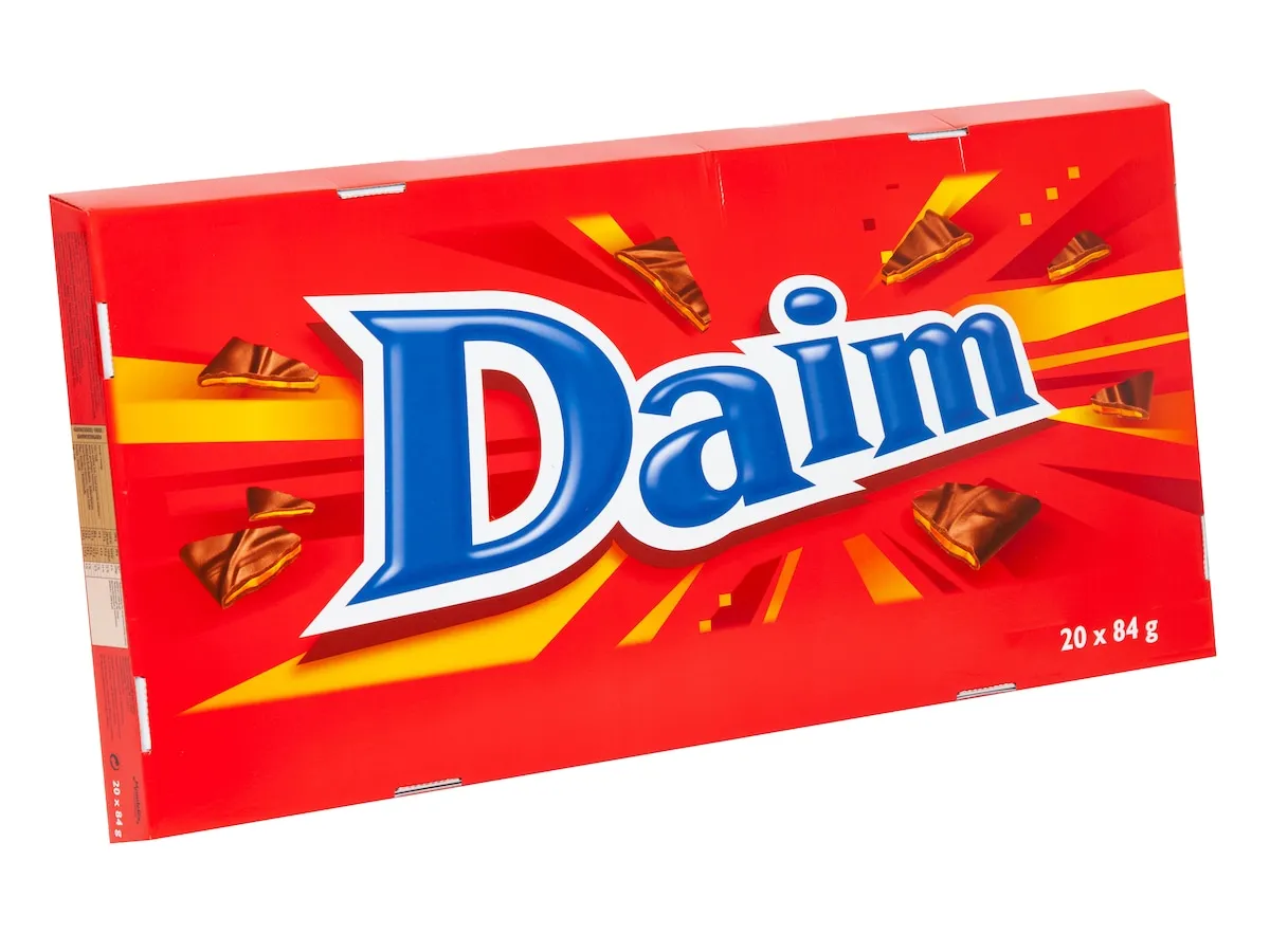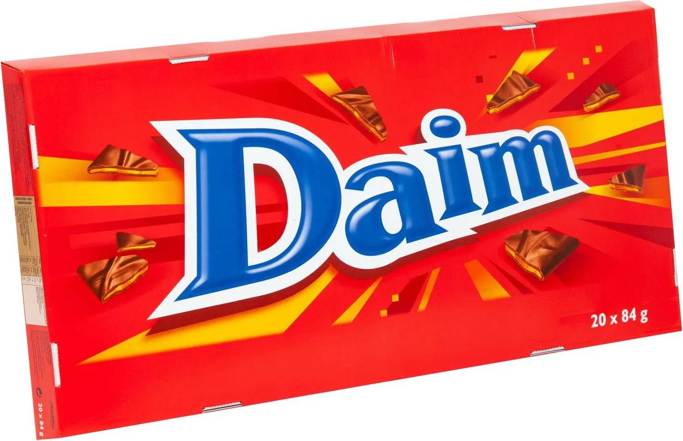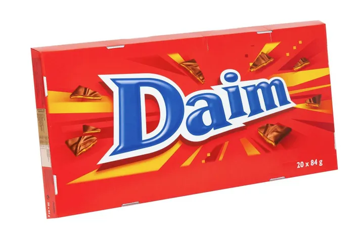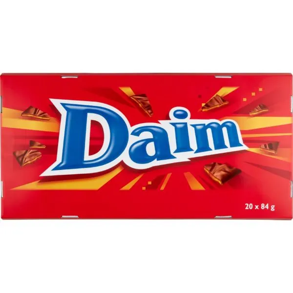 Den kæmpe XL pakke med Daim indeholder 20 af de populære barer af hver 84g. Daim har en kerne af hård karamel, som gør den uimodståelig at bide i, og er overtrukket med et fint lag af mælkechokolade.